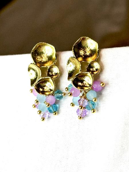 Brincos Gerânio Laranja Pastel/ Azul Pastel