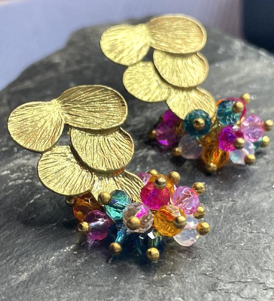 Brincos de base de efeito cascata em latão banhado a ouro com cristais austríacos nas cores: rosa barbie, rosa fushia, azul royal, branco, transparente e amarelo torrado. Possibilidade de personalização. Base apenas disponível em dourado. Possibilidade de alteração das cores.