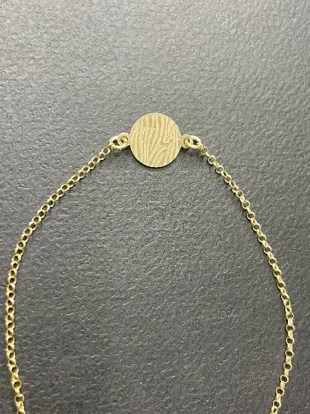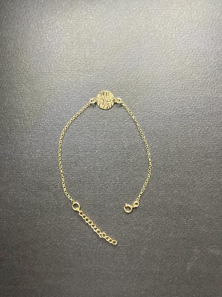Pulseira em corrente de elo português, totalmente em prata 925 banhada a ouro, com medalha central no padrão zebra, também em prata 925 banhada a ouro. Possibilidade de personalizar em prateado.