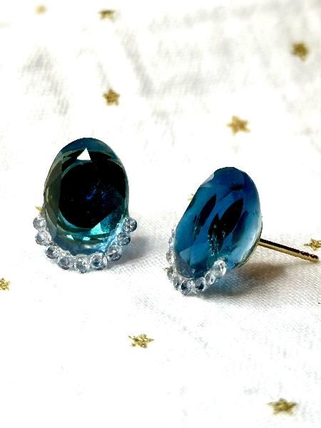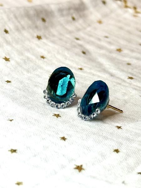 Brincos com zircónia azul safira média e zircónias brancas: 5 zircónias brancas 2.0mm e 4 zircónias brancas 1.7mm. Pino traseiro em prata 925 banhada a ouro.