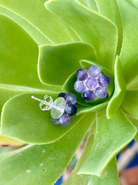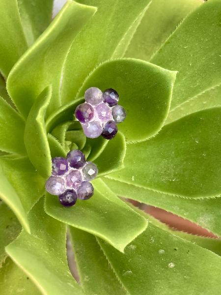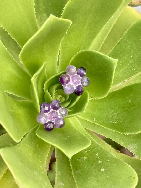 Brinco de construção manual em formato flor sobre base/ pino em prata 925 com pedras naturais. Pedras naturais: ametista. Possibilidade de personalização.
