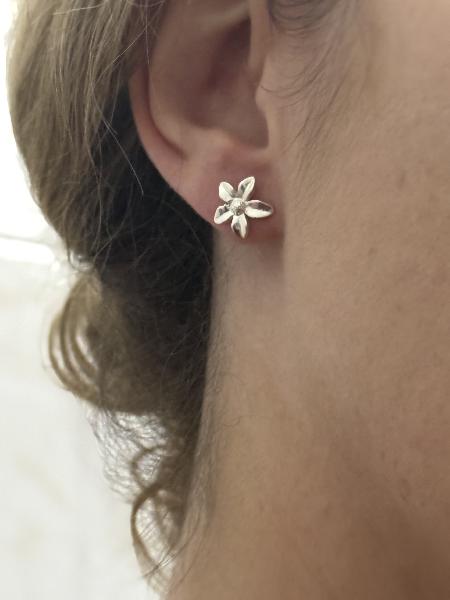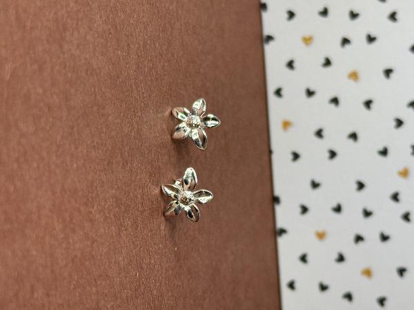 Brincos flor 5 pétalas, curtos, totalmente em Prata 925. Apenas disponível em prateado.