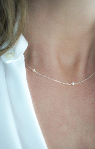 Fio com 5 mini pérolas, com um comprimento de 35 cm e um prolongador de 5 cm, feito por medida, em Prata 925.