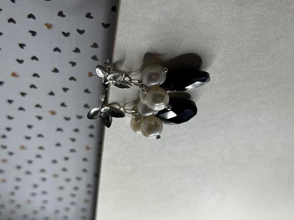 Brincos de base meia flor em Prata 925, com 3 pérolas de rio de 7mm cada e uma turmalina negra em formato de gota. Apenas disponível em prateado. Possibilidade de personalização.