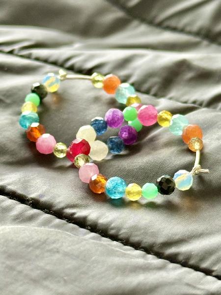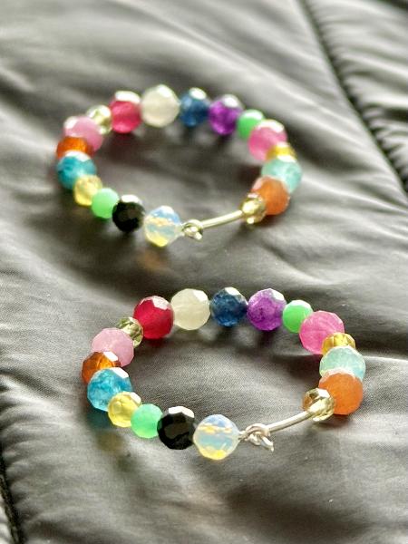 Argolas em fio de Prata 925, com pedras naturais variadas (em tamanho, cor e transparência. Possibilidade de personalização de cor ou pedra natural específica. Disponível em prateado e dourado.