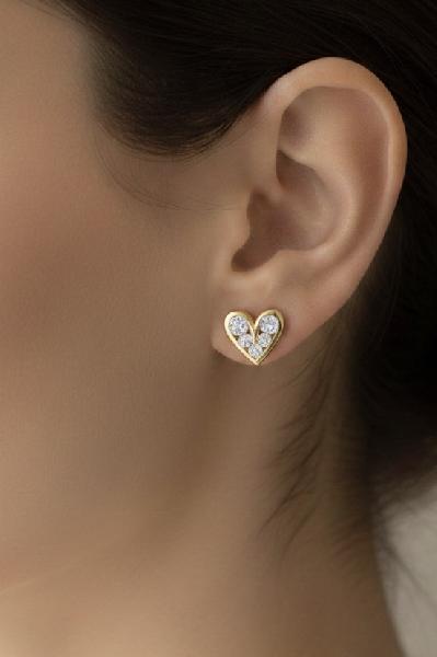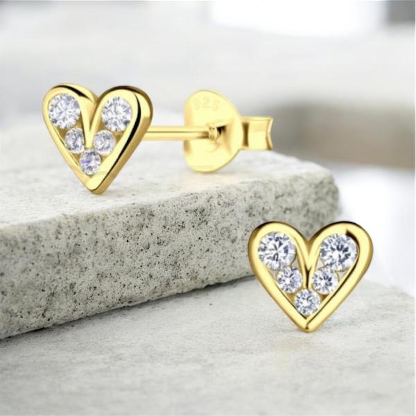 Brincos em forma de coração e zircónias brancas, com um tamanho de 7 x 6 mm, em Prata 925 banhada a ouro. Apenas disponível em dourado.