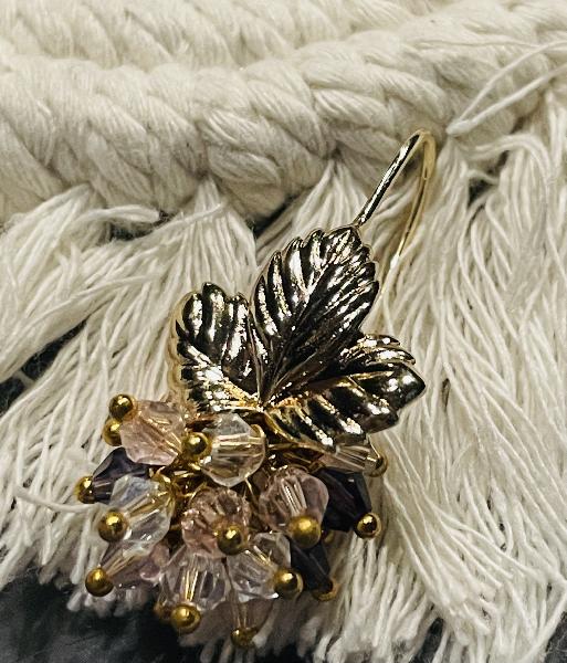 Brincos Folha Norueguesa Rosa Velho/ Ameixa/ Transparente